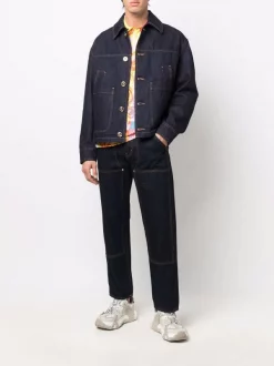 ( Nouvelle Collection ) Versace 2D340 BLU+PRINT Veste En Jean à Coutures Contrastantes Homme
